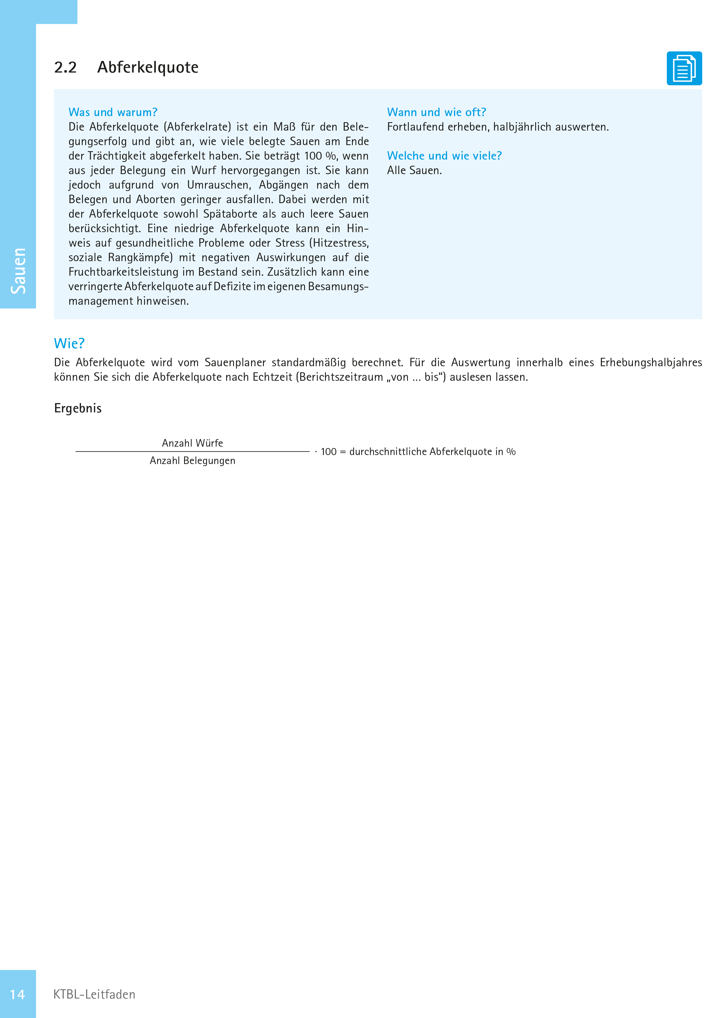 Die Abferkelquote sollten Sie am besten an allen besamten Sauen (bei Jungsauen ab erster Besamung) fortlaufend erheben und halbjährlich auswerten.