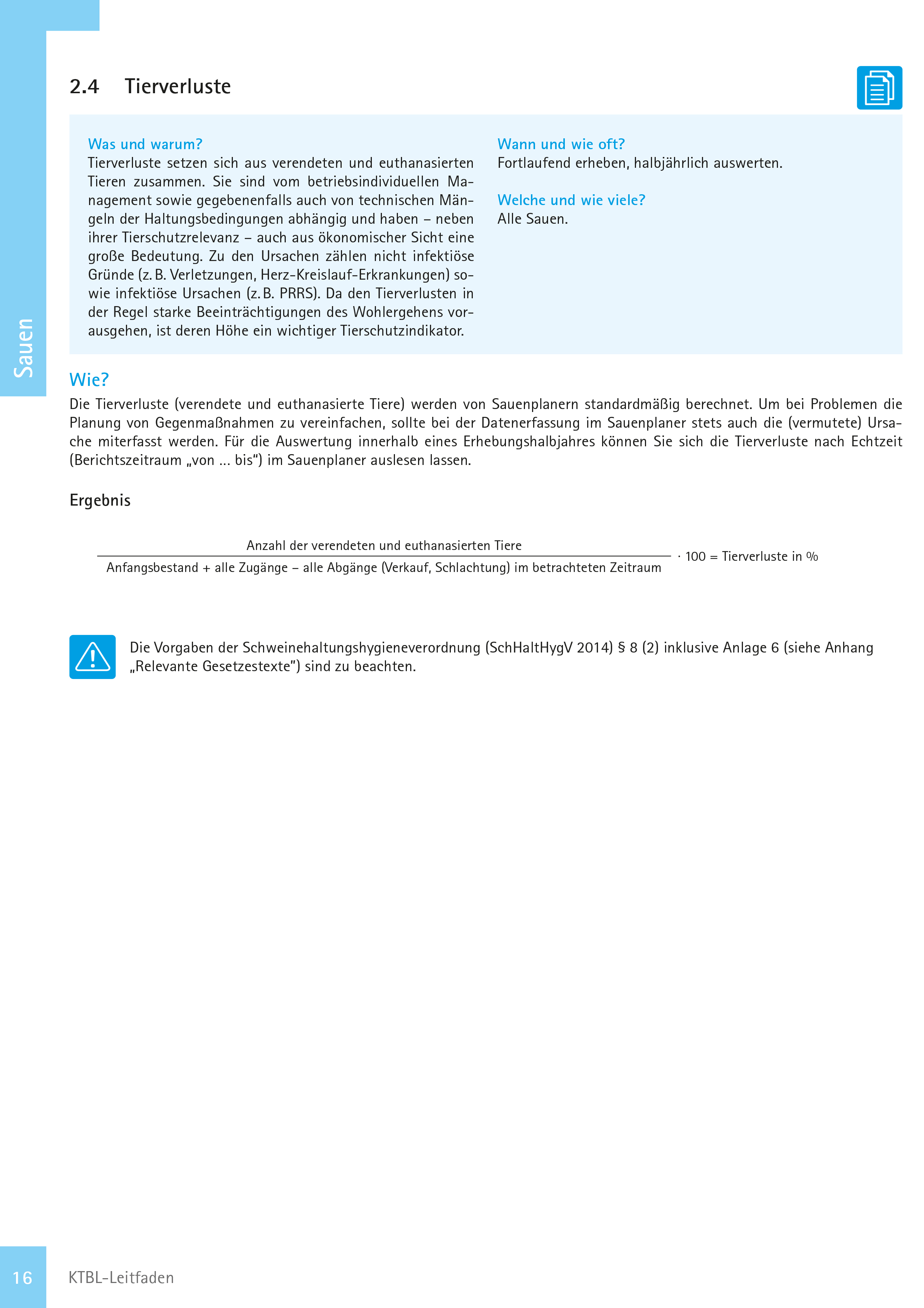 Der Anteil Tierverluste der Sauen ergibt sich aus folgender Berechnung: