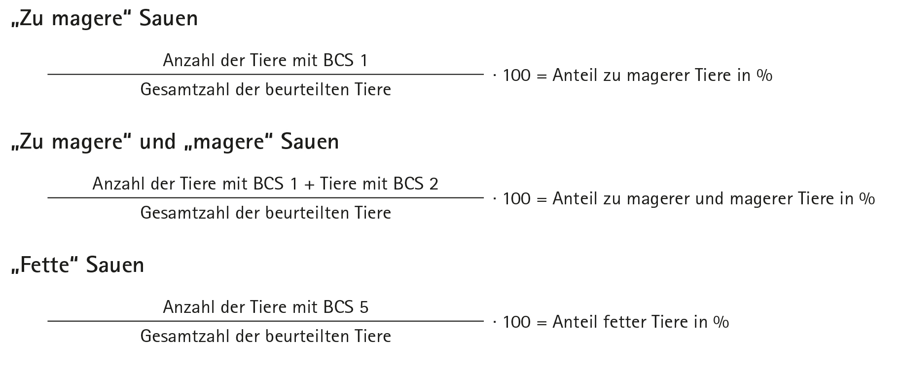 Der Anteil der zu magerer, magerer und fetter Sauen ergibt sich aus folgenden Berechnungen: