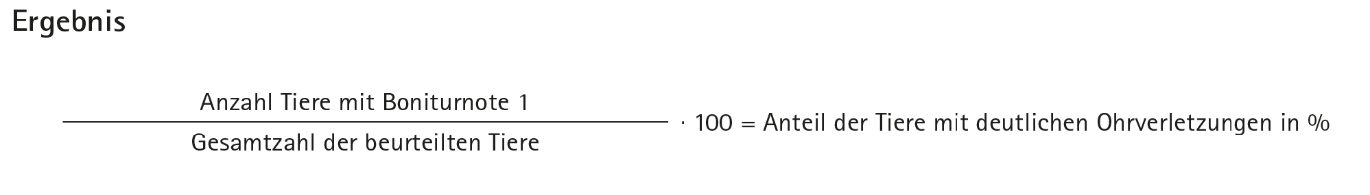 Sie haben von insgesamt 150 untersuchten Tieren, 42 Tiere mit Boniturnote 1 beurteilt. Der Anteil Tiere mit deutlichen Ohrverletzungen beträgt 28 %.