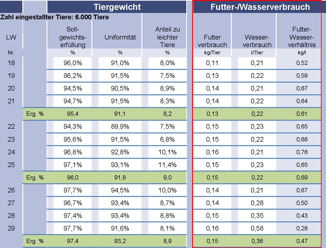 Futter- und Wasserverbrauch