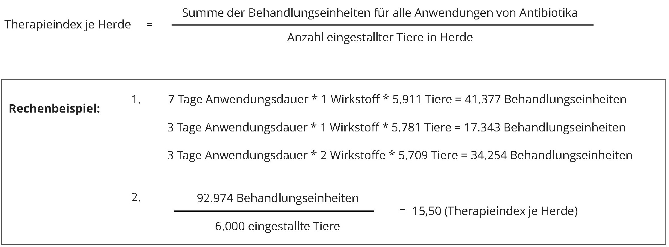 Der Antibiotikaeinsatz muss stets in Zusammenhang mit anderen Indikatoren, wie z.B. den Tierverlusten, bewertet werden. Der berechnete Therapieindex wird zum innerbetrieblichen Vergleich über mehrere Durchgänge herangezogen.