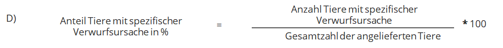 "Verworfene ganze Tierkörper" sowie gegebenfalls "verworfene Teilstücke" geben Hinweise auf Schäden am Tier und seinen Gesundheitszustand. Mögliche Ursachen für den Verwurf der Tierkörper oder von Teilstücken sind u.a. unzureichende Ausblutung, Hämatome, Verletzungen,