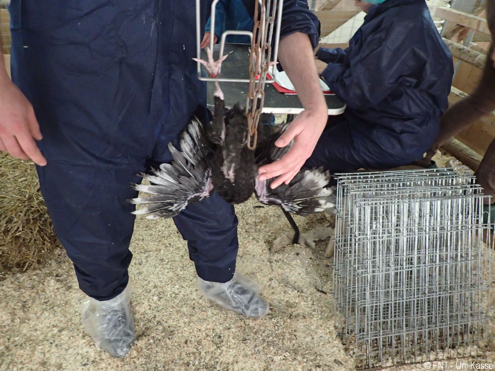 Im Anschluss an die manuellen Wiegungen wird die Kennzahl Uniformität mit Hilfe der Berechnungsformeln aus dem KTBL-Leitfaden (S. 66) kalkuliert. Berechnen Sie hierzu die Anzahl Tiere in einem Korridor von ± 10 % vom durchschnittlichen Gewicht der Mastputen. Dividieren Sie die Gesamtsumme durch die Zahl der insgesamt gewogenen Tiere. Multiplizieren Sie das Ergebnis mit der Zahl 100, um die Uniformität in Prozent zu erhalten.