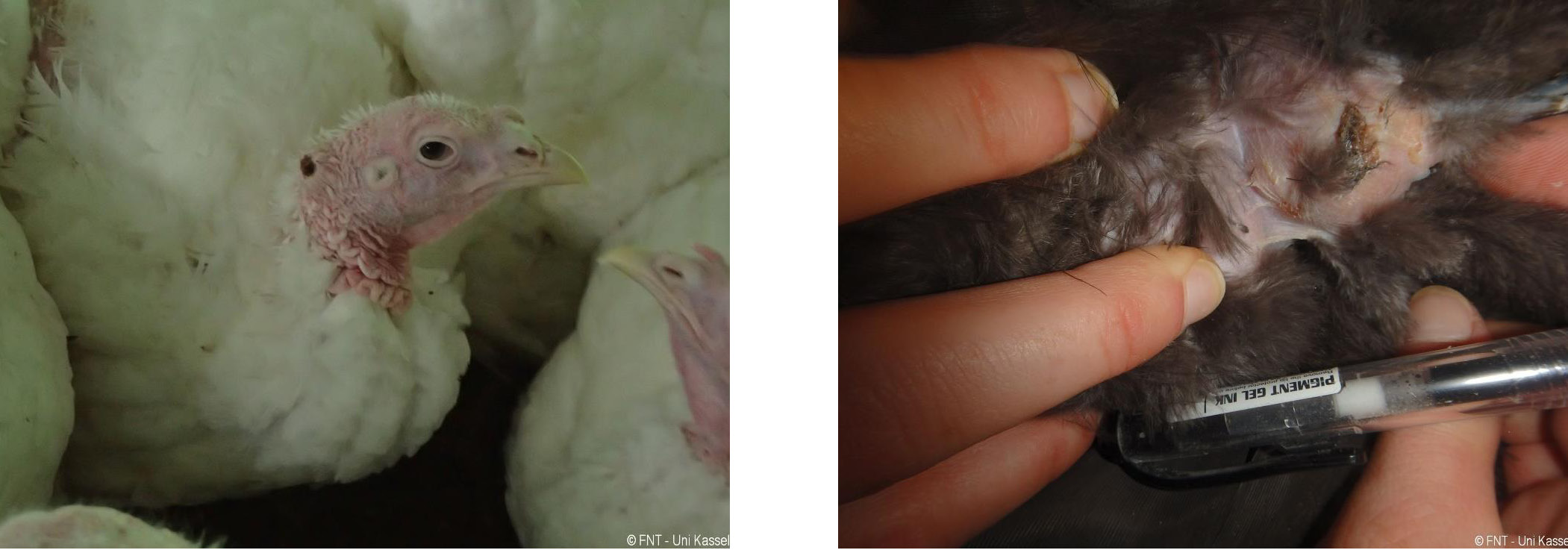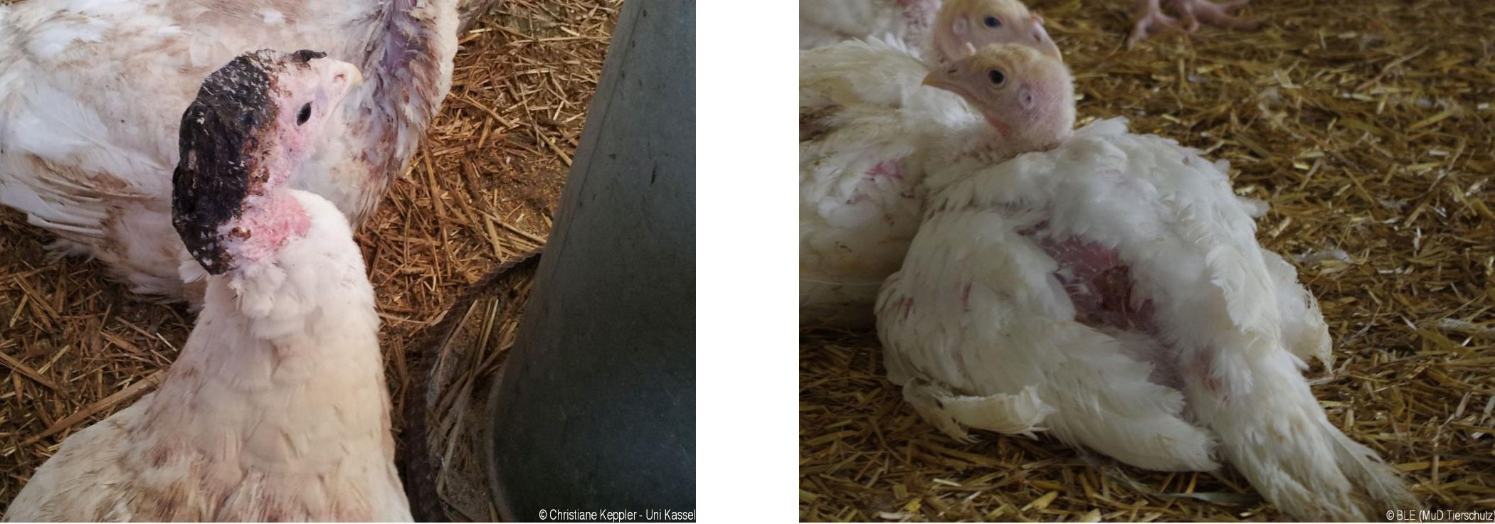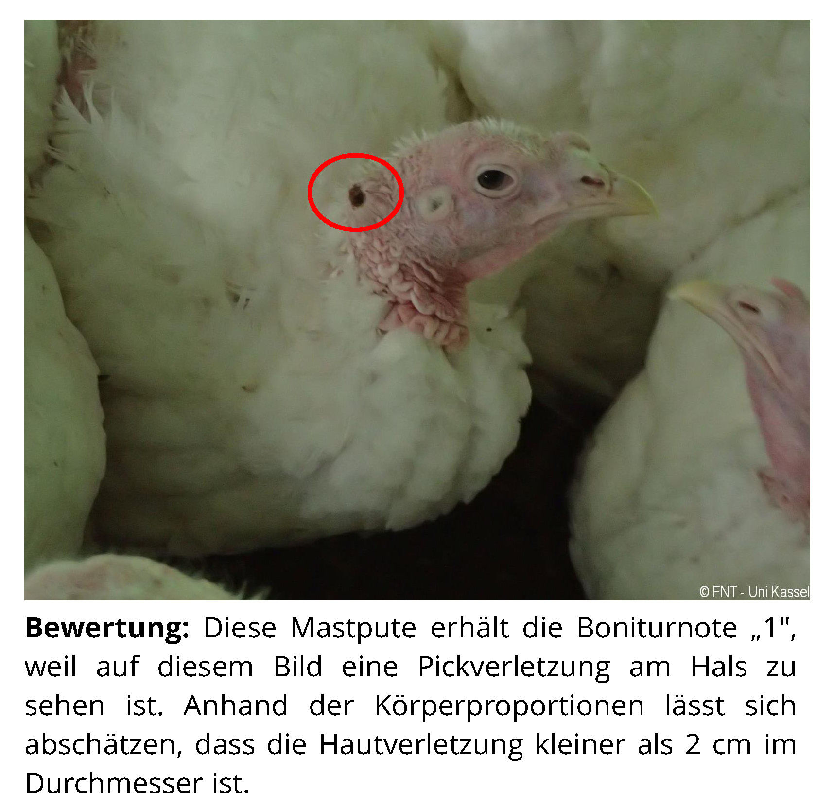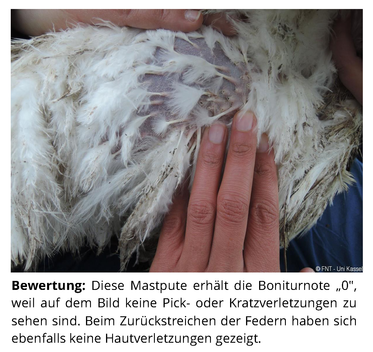 Das Zusatzmaterial für den Indikator "Hautverletzungen" soll dazu dienen, die erworbenen Kenntnisse anhand von Praxisbeispielen zu vertiefen. Zu diesem Zweck werden zu jeder Boniturstufe des Tierschutzindikators Praxisbilder gezeigt und weiterführende Informationen zum Hintergrund der jeweiligen Bewertung gegeben. Darüber hinaus werden Grenzfälle zwischen zwei Boniturnoten und Besonderheiten bei der Tierbeurteilung vorgestellt. Klicken Sie auf den blauen Link oberhalb der Abbildungen, um eine vergrößerte Ansicht inkl. der Bewertung zu erhalten.