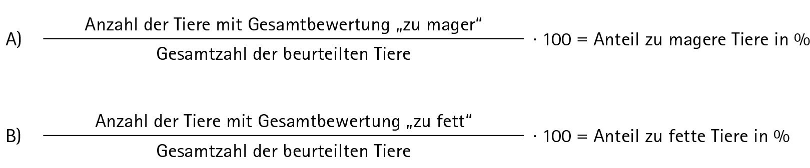 - Zählen Sie alle als A) „zu mager“ bzw. B) als "zu fett" beurteilten Tiere.