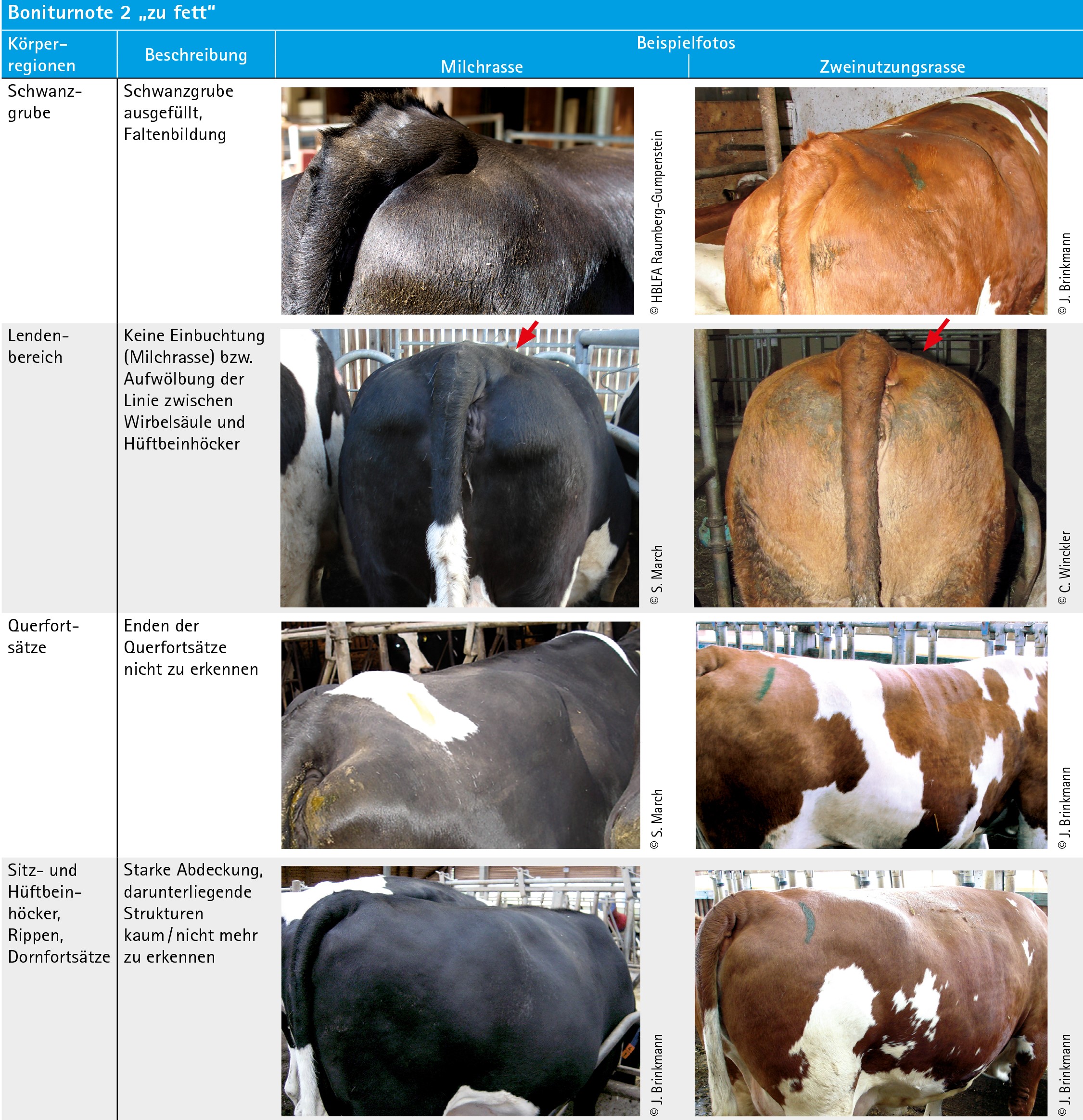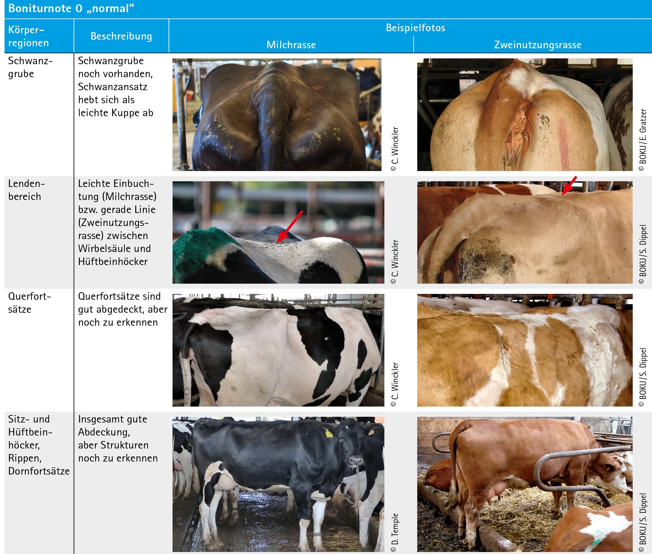 Die Beurteilungskriterien für Milchrassen und Zweinutzungsrassen finden Sie in den Tabellen: