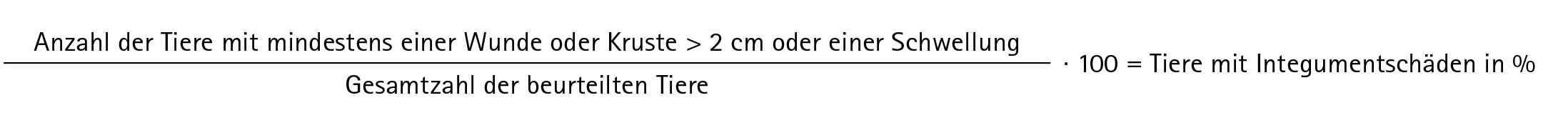 Multiplizieren Sie mit 100, um den Prozentanteil der Tiere mit Integumentschäden an den Gelenken bzw. am Nacken zu erhalten.