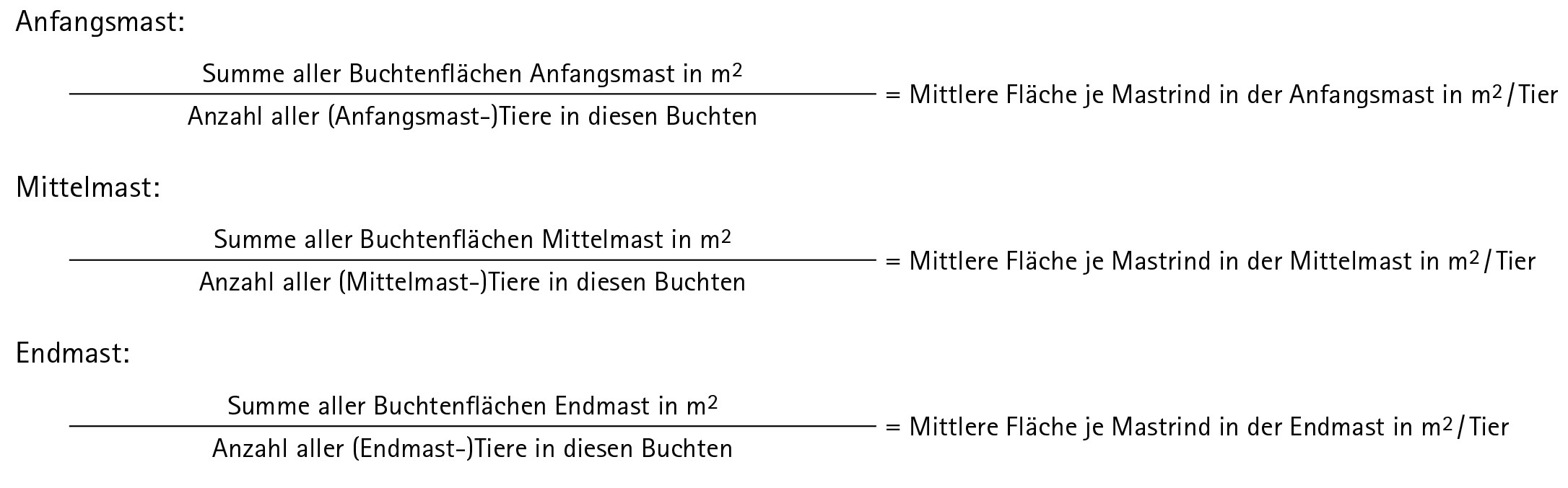 - Erhalten Sie so die mittlere Fläche je Tier im jeweiligen Mastabschnitt (Anfangs-, Mittel- und Endmast).