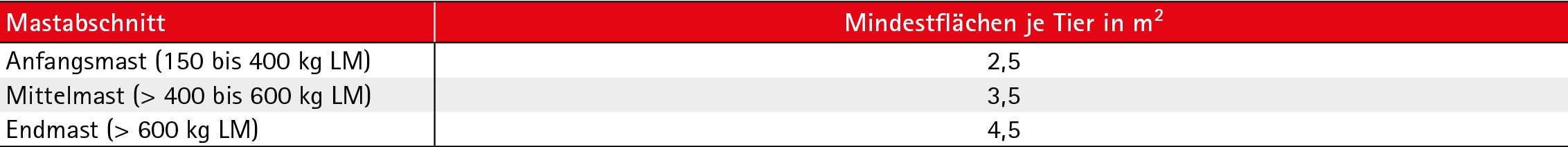 A) Berechnen Sie das mittlere Flächenangebot je Tier und Mastabschnitt: