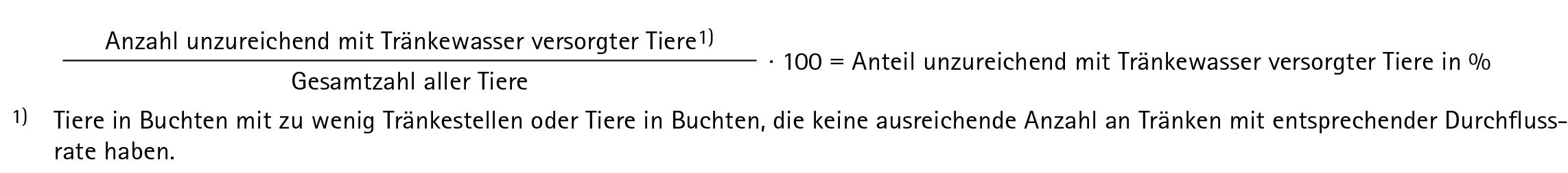 Multiplizieren Sie mit 100, um den Prozentanteil unzureichend mit Tränkewasser versorgter Tiere zu erhalten.