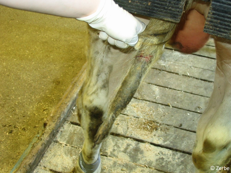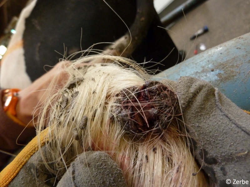 Beispiel für eine verkrustete Wunde an der Schwanzspitze: