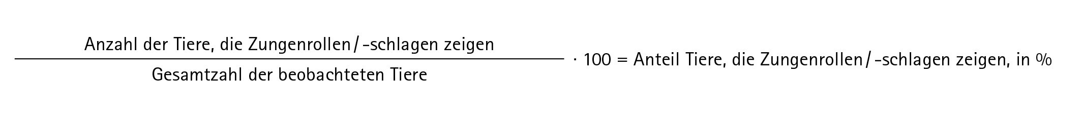 - Multiplizieren Sie mit 100, um den Prozentanteil der Tiere, die Zungenrollen/-schlagen zeigen zu erhalten.