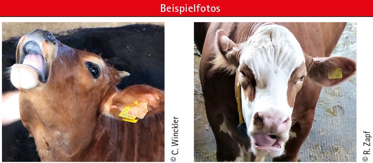Nehmen Sie sich 30 Minuten Zeit (nicht in der Hauptfressphase), gleichmäßig auf alle Mastrinder und -buchten verteilt. Zählen Sie Tiere, die Zungenrollen oder -schlagen zeigen.