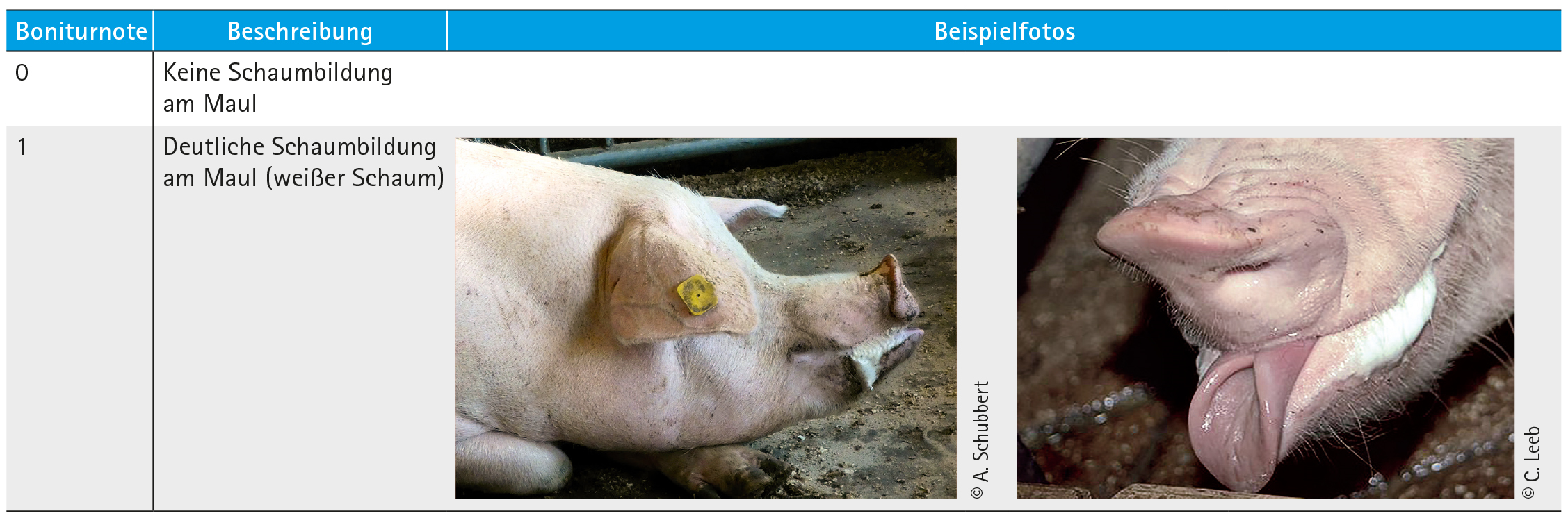 - Beurteilen Sie die Sau auf deutliche weiße Schaumbildung am Maul