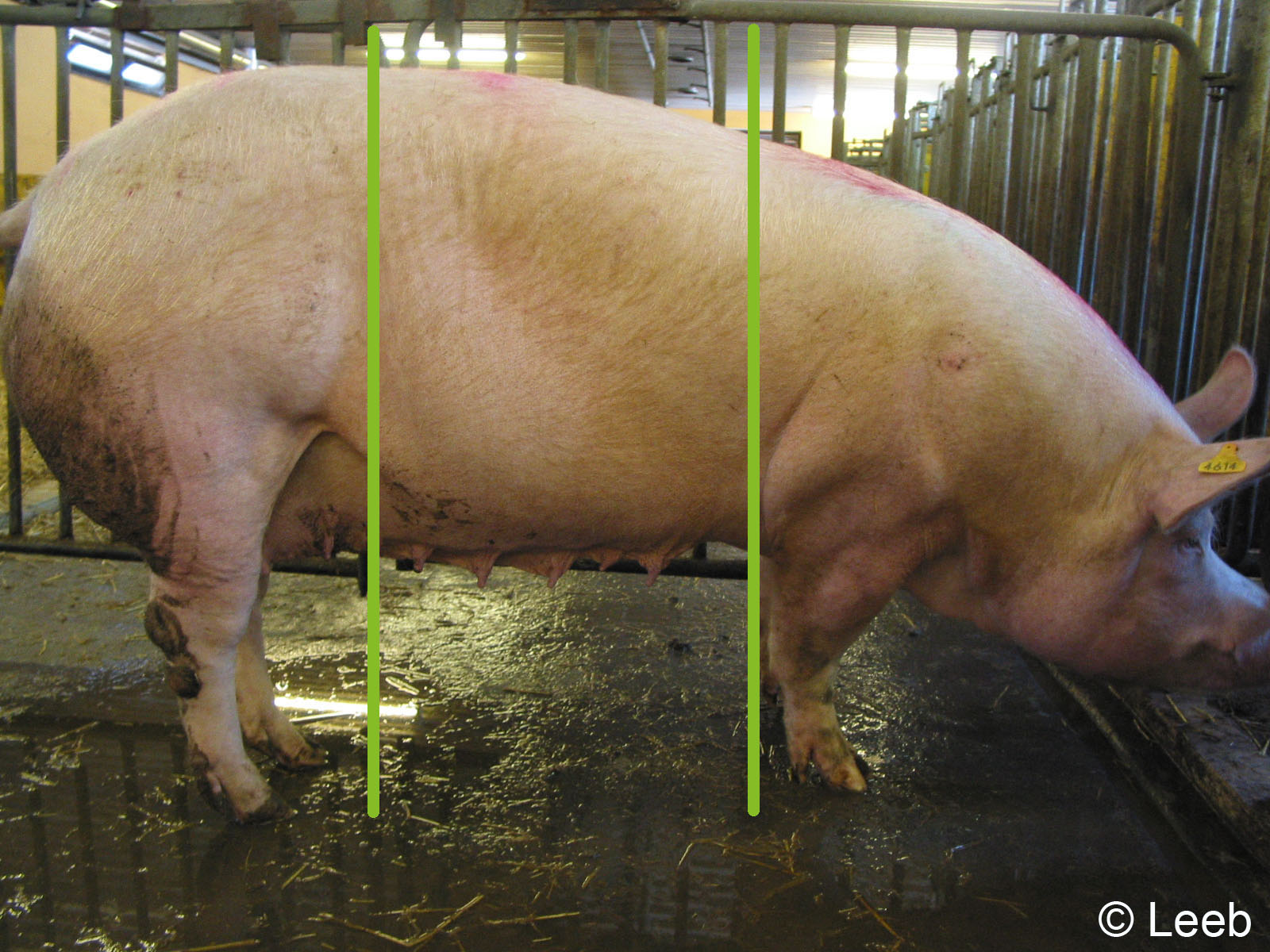 1. Um die mit Kot verschmutzten Körperoberteile besser einschätzen zu können, teilen Sie gedanklich den Körper der Sau in drei Teile ein .