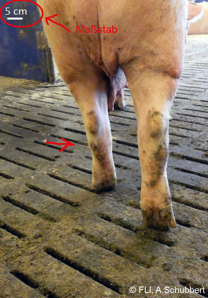 Damit Sie den Durchmesser von Schwellungen an den Hinterbeinen auf Fotos besser einschätzen können, ist ein Maßstab angegeben. Diesen finden Sie auf den Fotos immer oben rechts bzw. links.