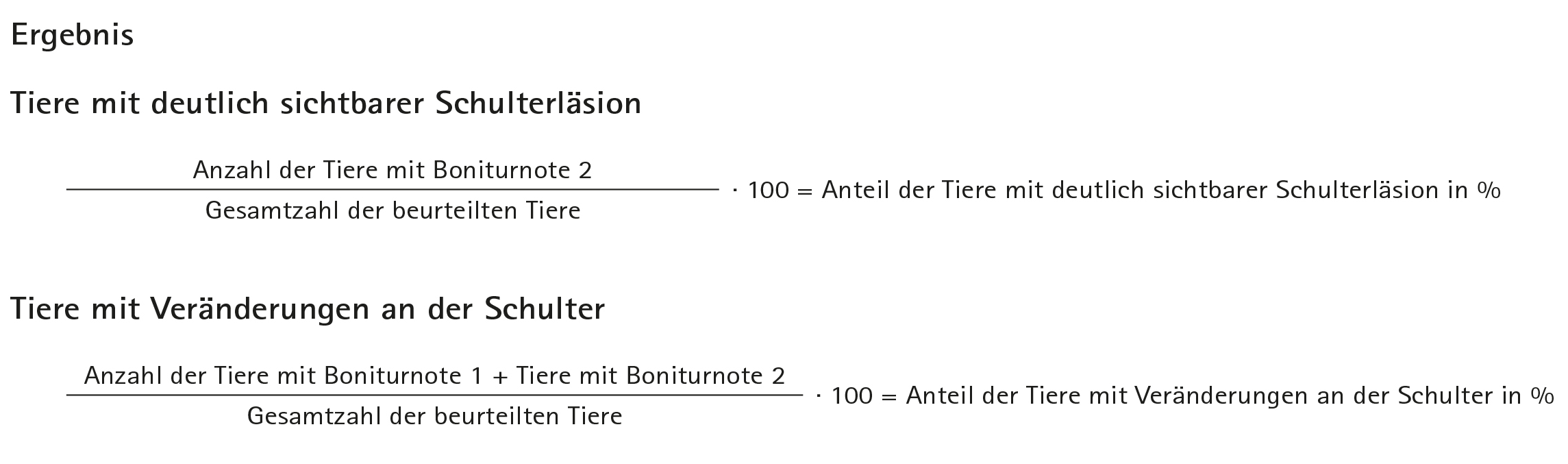 Der Anteil Tiere mit deutlich sichtbaren Schulterläsionen und Veränderungen an der Schulter ergibt sich aus folgenden Berechnungen: