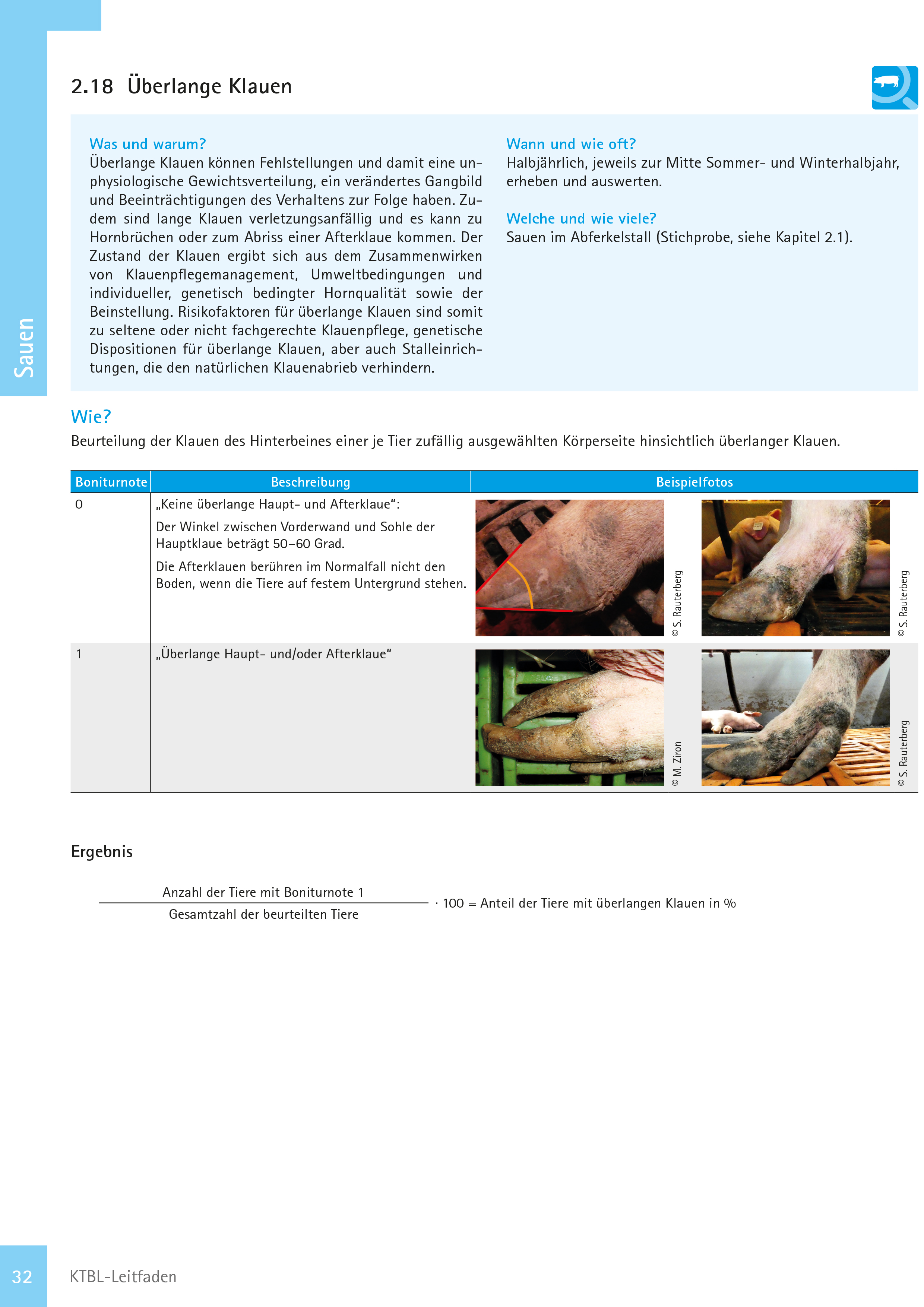 - Beurteilen Sie die Klauen des Hinterbeins einer zufällig je Sau ausgewählten Körperseite.